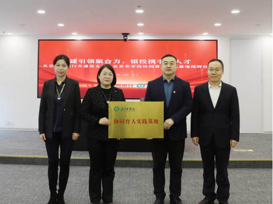 师生代表赴北京农商银行天通苑支行举行“协同育人实践基地”授牌仪式,标志着双方在人才培养、产教融合方面合作迈入新阶段。