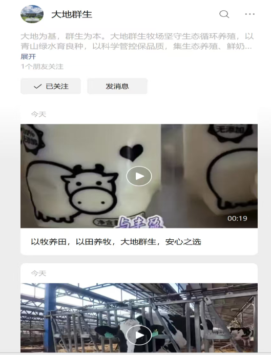 品牌升级,拓展线上空间。为提升市场认知度,设计了富有牧场特色的乳制品包装,并协助开通大地群生抖音、微信公众号等新媒体账号,通过短视频、直播等形式持续输出品牌内容,构建线上线下融合的新零售模式,进一步拓宽销售渠道。