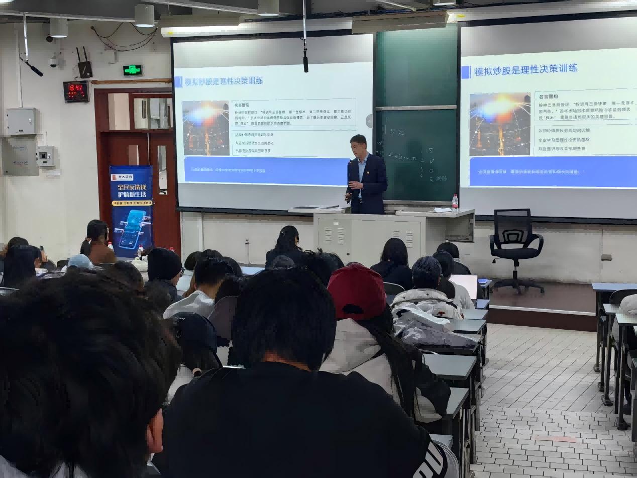经济系主任蒲应燕及教师白艳娟、刘潇璐等,全校100多名对金融投资感兴趣的同学积极参与,现场学习氛围浓厚。