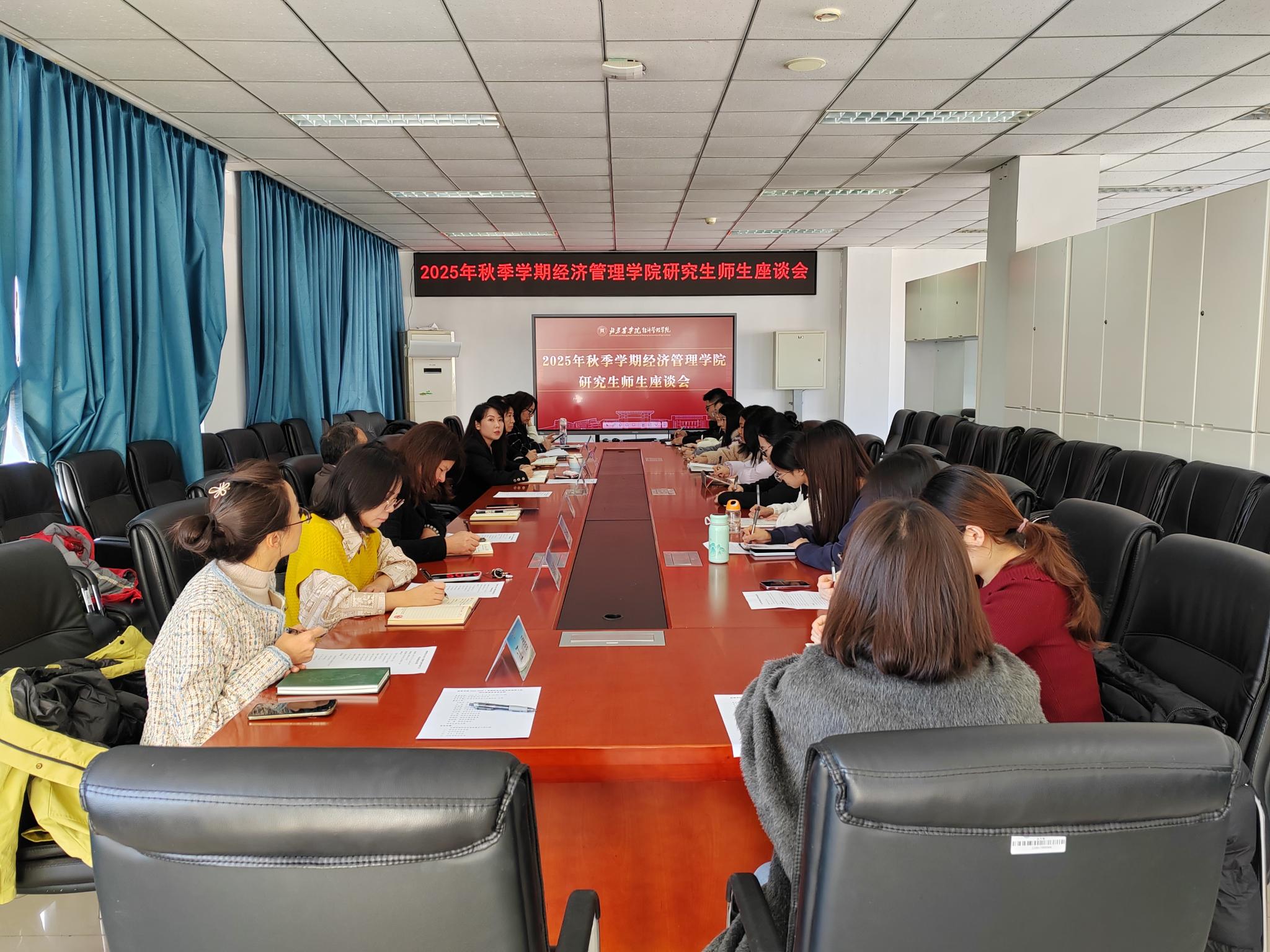 于经管楼401会议室组织召开了2025年秋季学期期中教学检查研究生师生座谈会。会议由红桃视频