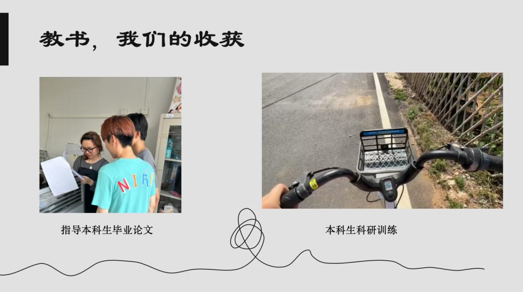 她积极指导学生参加学科竞赛,将课上所学落实为实际的能力。她利用自己的空余时间指导本科生开展科研训练、本科生撰写毕业论文,从开题立论到数据分析过程,悉心指导,帮助学生形成科研能力。